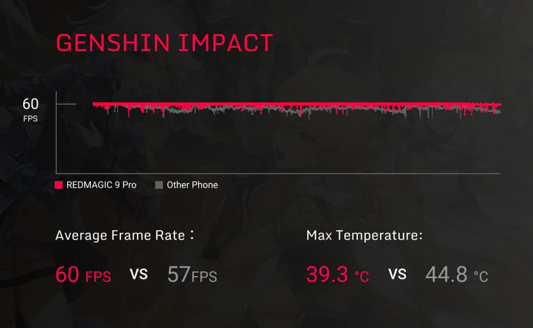Multitask without compromising performance. REDMAGIC 9 Pro maintains the performance stability without a single drop in frame rate after 1 hour of gameplay, split-screen tasks or watching videos on HD.